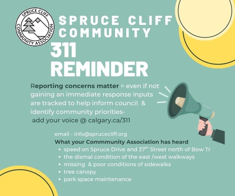 The Spruce Cliff Community Associations acknowledges that we live, work and play on the traditional territories of the Niitsitapi (Blackfoot) and the people of the Treaty 7 region in Southern Alberta, which includes the Siksika, the Piikani, the Kainai, the Tsuut’ina and the Stoney Nakoda First Nations, including Chiniki, Bearspaw, and Wesley First Nations. The City of Calgary is also home to Métis Nation of Alberta, Region III. We acknowledge all Indigenous urban Calgarians who have made Calgary their home.